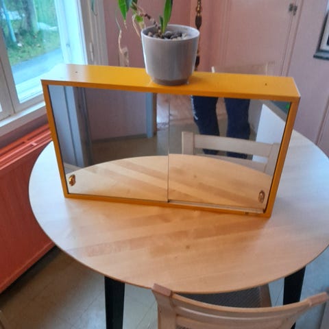 Muovinen Allibert-peilikaappi 80-luvulta. Muuten ehjä, mutta kaapin sisällä oleva pistorasia vaatii korjausta. Leveys 60 cm, korkeus 52 cm, syvyys 15 cm.