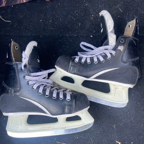Roces jääkiekkoluistimet lapsille, koko 35. Väriltään musta-siniset valkoisilla nauhoilla. Tarkoitettu jääkiekkokäyttöön. Terät metallia, varsi tukee nilkkaa luistelussa. Soveltuvat lapselle, jonka kengänkoko on noin 35 ja joka tarvitsee tukevat luistimet jääkiekkoharjoitteluun tai muuhun luisteluun.