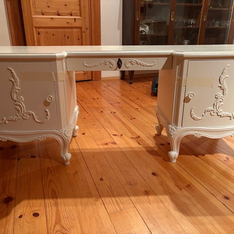 Ehjät ja tukevat, mutta maalissa kulumaa ja toisen pöydän pinta korkannut kuvan mukaisesti