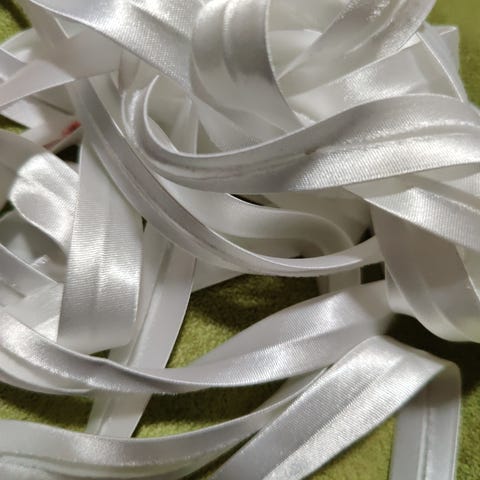 Puuvillaa, eri levyisiä ja eri mittaisia jäännös nauhoja. Pituus 50-280 cm.