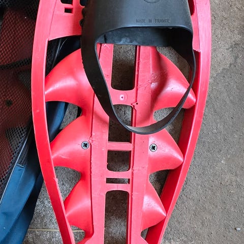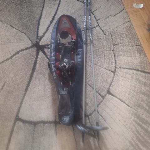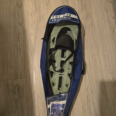 Hyväkuntoiset lumikengät aikuisille, joustava side pysyy hyvin jalassa ja sopii monenlaiseen kenkään. Nastat pohjassa tuomaan pitoa vähän jäätiköllekkin.