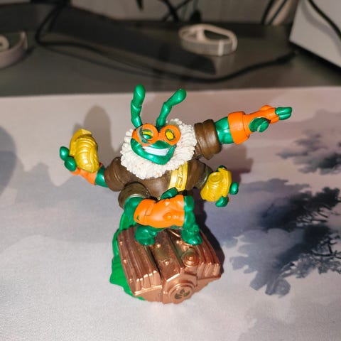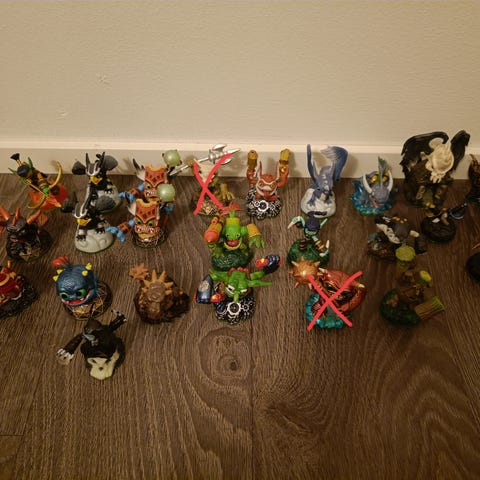 Skylanders pelihahmot ja portaalialusta. Kuvissa useita eri Skylanders-hahmoja sekä USB-kaapelilla liitettävä portaalialusta, jota käytetään hahmojen tuomiseen peliin yhteensopivilla pelikonsoleilla tai tietokoneella. Hahmot asetetaan portaalin päälle pelin aikana. Soveltuu Skylanders-pelisarjan kanssa käytettäväksi, tarkempi yhteensopivuus riippuu peliversiosta ja alustasta.
