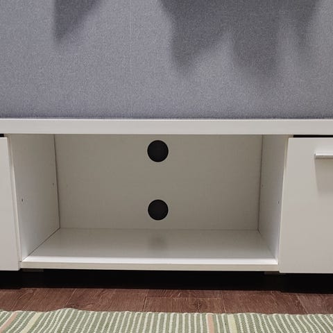 Myydään suuremman TV-tason tieltä hyväkuntoinen pieni ja näppärä kiiltäväpintainen TV-taso jossa yksi vetolaatikko ja kaksi avohyllyä.