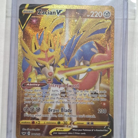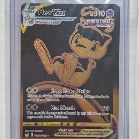 Pokémon Mimikyu VMAX keräilykortti. Kyseessä on Pokémon TCG -pelin kortti, jossa on Mimikyu VMAX -hahmo. Kortti on englanninkielinen ja tarkoitettu Pokémon-korttipeliin sekä keräilyyn. Kortin taustapuolella on perinteinen sininen Pokémon-kortin takaosa poképallokuvalla.