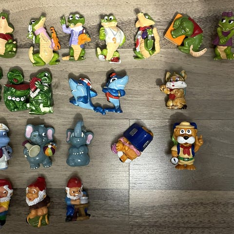 Kuvassa olevat Kinder yllätyslelut 90-luvulta. Yhdessä tai erikseen, tarjoa!