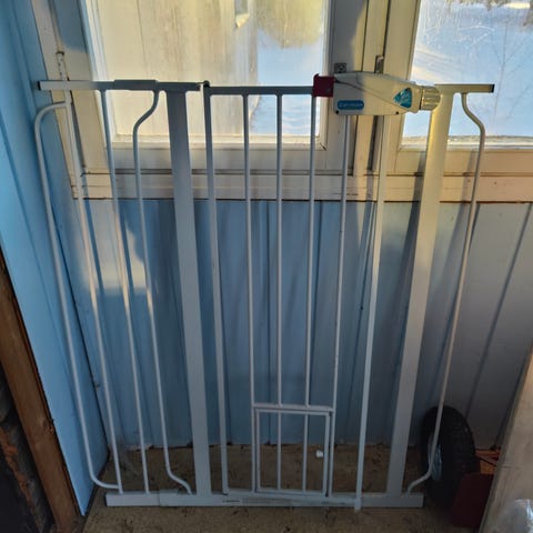 Myydään koiraportti. 74-84cm leveä. Korkeus 74cm. Ehjä. Yhdellä kädellä avattava. Aukeaa molempiin suuntiin.
