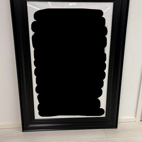 Kaksi Ikean mustaa Fiskbo kehystä, 50x70 cm. 5€/kpl. Pahvitausta ja metalliset kiinnikkeet. Muovinen suojalasi.