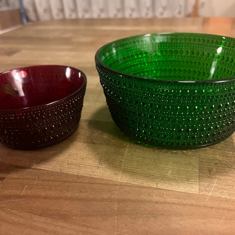 Hyvin vanhat ja todella kuluneet ruskeat Kastehelmi kulhot 2kpl yhteishintaan. Tarjoa! Reunat todella kuluneet, samoin sisäpuolelta. En käyttäisi enää elintarvikkeille, mutta esim lasitöihin/askarteluun/kukkaistutukseen tms.