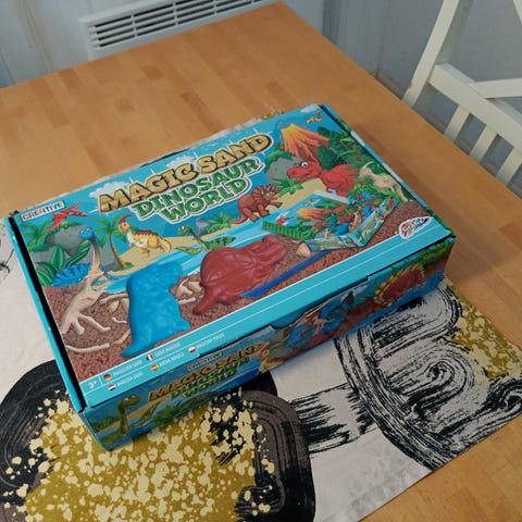 Sinistä ja punaista taikahiekkaa vesileikkeihin. Linna ja kaksi lapiota mukana.