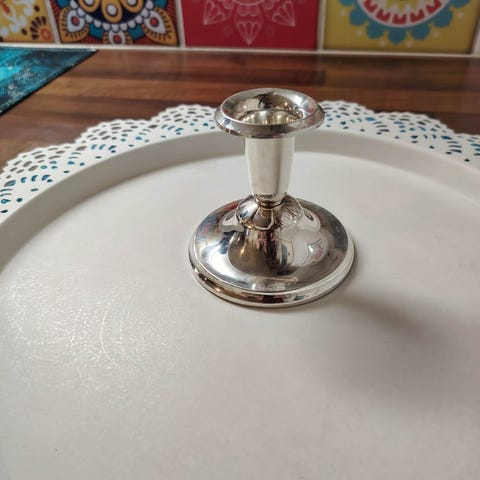 Aura hopea kynttilänjalka, jossa 830-hopealeima. Kapea, pyöristetty jalka ja yksinkertainen, klassinen muotoilu. Soveltuu kruunukynttilälle tai vastaavalle. Pohjassa selkeät leimat, jotka kertovat materiaalista ja valmistajasta.