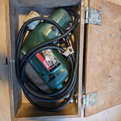 Kone takapotkun estolla, kaksi akkua, laturi, kuljetussalkku. Takuu voimassa. Mieluiten nouto