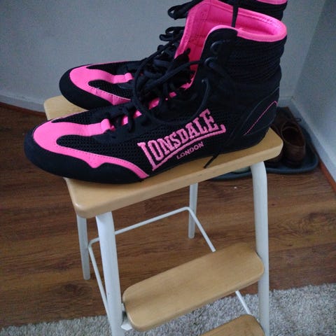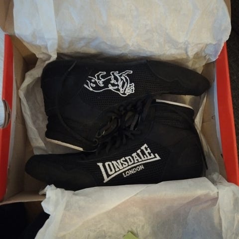 Nyrkkeilykengät, joissa on lisäpehmuste nilkan ympärillä erinomaisen tuen ja mukavuuden takaamiseksi. Sivuissa olevat verkkopaneelit parantavat ilmanvaihtoa. EVA-välipohja antaa lisävaimennusta.