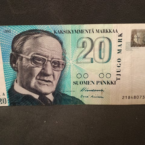 20 markan seteleitä 2 kpl. 1993 vuodelta