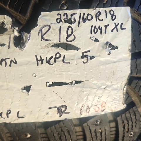 Nokian hakkapeliitta 5 nastarenkaat. Nastat suurinpiirtein tallessa ja pintaa vielä ihan hyvin, mutta ikäähän noilla alkaa olemaan. Vaikka jäälle, pellolle tai siirtorenkaiksi.