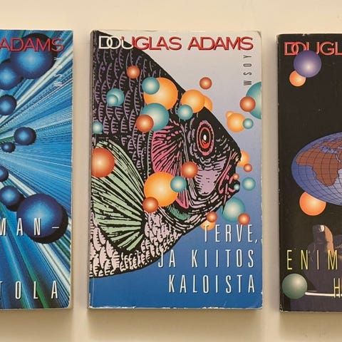 And another thing... fantasia scifi kauhu romaanisarja kirjasarja trilogia klassikko scifiklassikko Älä hätäile. Maapallo tuhotaan tänään science fiction kulttiklassikko räävitön parodia Peukalo pystyyn ja Linnunradan laitaan Douglas Adams satiiri huumori
