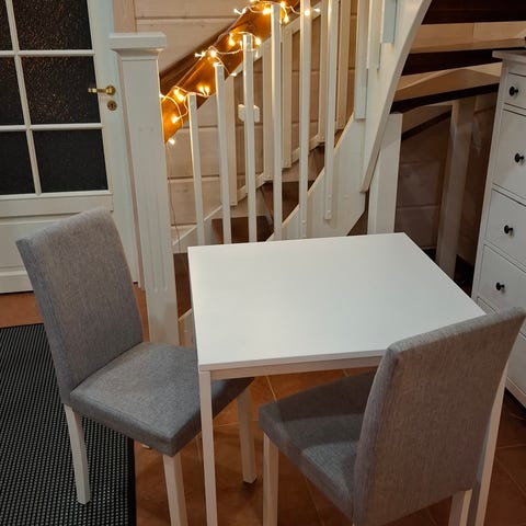 IKEA pöytäsarja, jossa kaksi erikokoista pöytää. Pöytien kannet ovat vaaleaa puunsävyistä materiaalia ja jalat mustat metallia. Yhdessä pöydässä mitat noin 110 cm x 40 cm, toisessa noin 70 cm x 28 cm. Pienemmät osat ovat neliönmuotoiset tuolit. Sopivat esimerkiksi työ- tai sivupöydiksi, lisätasoiksi tai pieneen tilaan sijoitettavaksi ruokapöydäksi. Pöydät mahtuvat toistensa alle säilytystä varten.