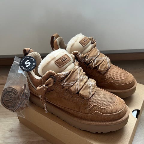 Ugg talvikengät, ei ole aitoja mutta vaikuttaa ihan aidoilta koko 39. Väriltään mustat, nilkkapituiset ja paksupohjaiset. Sopivat kylmempiin säihin arkikäyttöön. Materiaalista ei ole tarkkaa tietoa, mutta kengissä on pehmeä sisäpinta ja ulkopuoli näyttää mokkamaiselta. Kengät tulevat laatikossa.