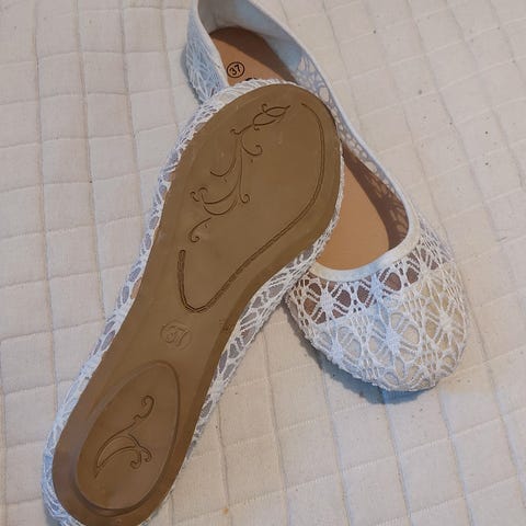 Ballerina kengät, koko 38 / 39. Verkkomateriaalia pallo koristein.