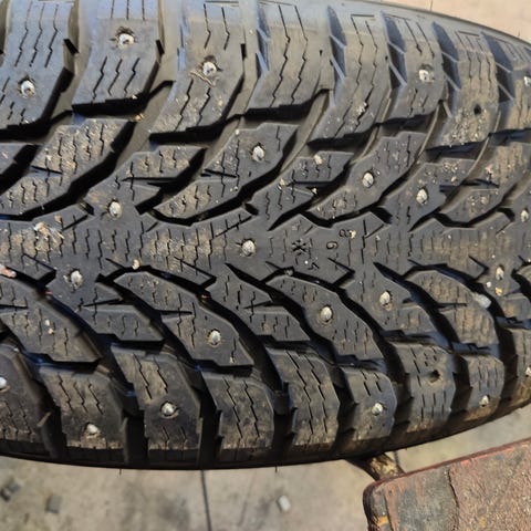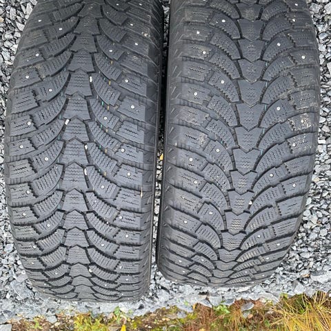 Käytetyt hyväkuntoiset 18” nastarenkaat. Pintaa 6-7mm ainakin kun nopeasti katselin. Nastatkin aika hyvin tallella. Huom, näissä riittää kantavuus isoihinkin pakettiautoon, esim neliveto Sprintteriin. Kantavuusluokka renkaissa 114.