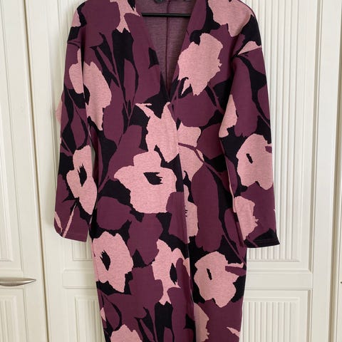 Nosh neuletakki, naisten koko S. Pitkä malli, jossa pitkät hihat. Kirjava kuosi tummalla pohjalla. Materiaali pääosin puuvillaa. Sopii käytettäväksi arjessa esimerkiksi tunikan tai mekon päällä kerrospukeutumiseen.