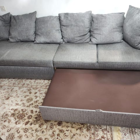 Halvalla erittäin hyvä vaaleanharmaa kulmasohva, jossa vuodesohva mekanismi. Kaikki toimii, alle 2v ostosta (Asko), joudutaan luopumaan muuton takia. Pituus pitkä sivu: 225cm, lyhyt sivu: 150cm. HUOM! Noudettavissa ti 24/02, kuljetus itse hoidettava. First come first serve 👍