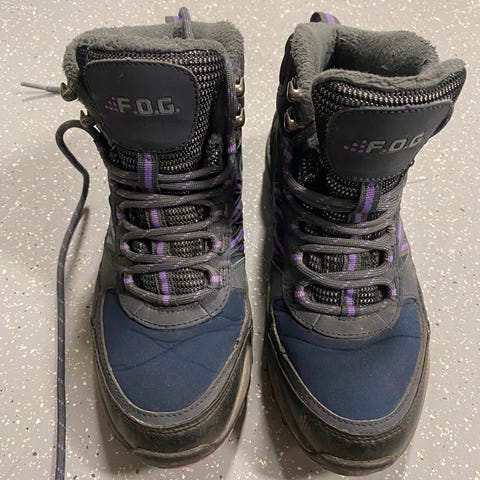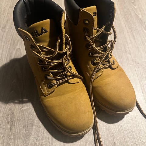 Fila talvikengät, koko 37. Väriltään ruskeat nauhalliset nilkkapituiset kengät, joissa on musta pehmustettu varsi ja kumipohja. Sopivat viileämpiin keleihin arkikäyttöön. Merkkilogo sivussa ja kielessä. Kunto kohtalainen.