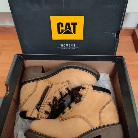 Myydään laadukkaat Caterpillar (CAT) vuorelliset nahkanilkkurit, koko 38 (wide width). Aitoa nahkaa, lämmin karvavuori ja tukeva pitävä pohja – hyvät talveen ja syksyyn.