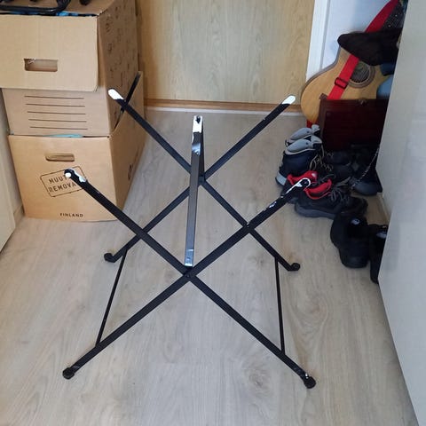 Puinen pöytä, metalli jalat, korkeus säädettävissä ( kuvissa säädettynä melko matalaksi , n.62cm, mutta saa säädettyä ihan normi korkeudelle esim ruokapöydäksi jos ajattelee),pituus 156cm leveys 75,5 cm ensimmäiselle hakijalle. Nouto aikaisintaan huomenna, eli lauantaina.