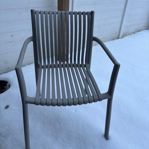 Yhdessä tuolissa jalan muovitassu haljennut, mikä ei haittaa käyttöä.