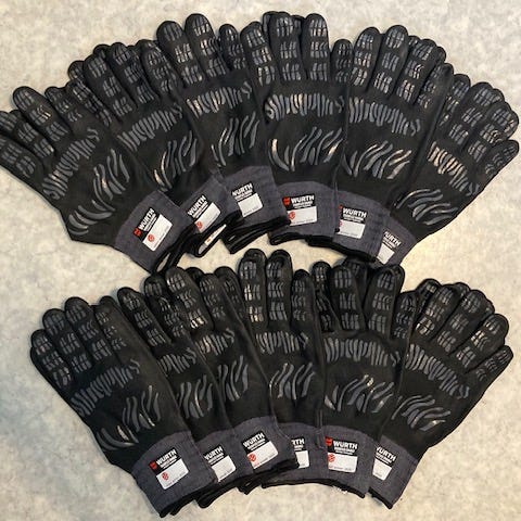 Hinta 10 euroa käsinepari tai 80 euroa 9 käsineparia. Myynnissä yhdeksän käsineparia.