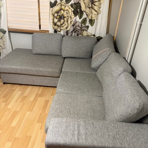 Myydään tilaa viemästä harvakseltaan käytössä ollut Laulumaan antrasiittiharmaa vuodesohva. Sohvassa reilun kokoinen säilytystila. Ainoana moitteena pieni rikkouma vuodevaatelaatikon pohjassa, ei näy käytössä (kts viimeinen kuva). Ilmoitus toisen puolesta, lauantaina 21 pv voidaan (hieman tarkasta sijainnista riippuen) tuoda 10€ lisämaksusta kauhava-kokkola välille.