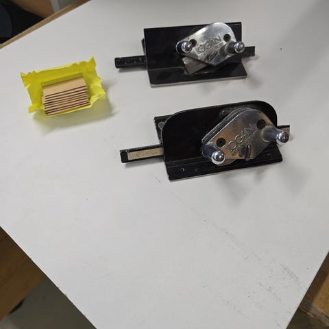 Leikkuualusta ja leikkuri tilkkutyön tekijöille ja askartelijoille. Leikkuri on terävä ja leikkuualustassa on viivat helpottamaan tikkujen kokoa ym ym