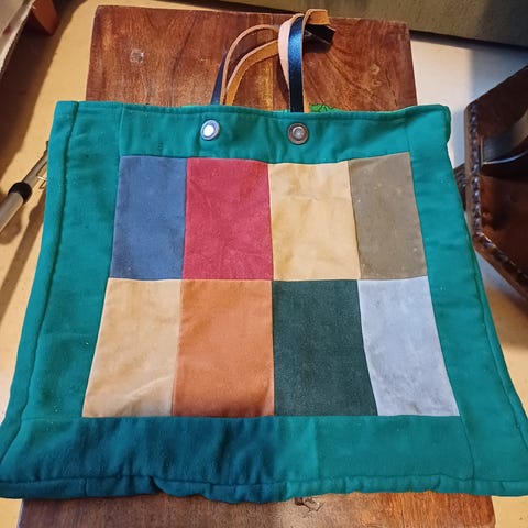 Retro siisti samettilaukku. Edessä kaksi sivutaskua ja sisällä yksi vetoketjullinen. Leveys 33 cm, korkeus 36 cm ja syvyys 10 cm. Sisäpihan pahvissa pienet, jotka näkyy kuvissa.