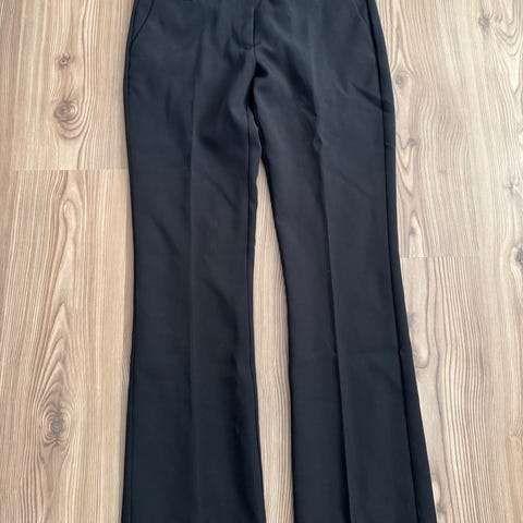 Bik Bokin tummanruskeat ”satiini”housut. Lahkeissa pitsikoristeet. Koko s.