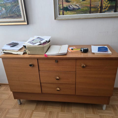 Myydään suoraan käytöstä ( käytön jälkiä näkyy naarmuina) hyväkuntoinen ja hyvin palvellut teak lipasto 3 vetolaatikolla, laatikot siistit sisältä