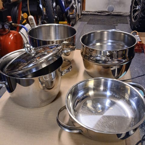 Kaksi hyväkuntoista kattilaa. Toinen pieni ja toinen keskikokoinen (3.0l). Molemmat yht. 5€