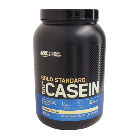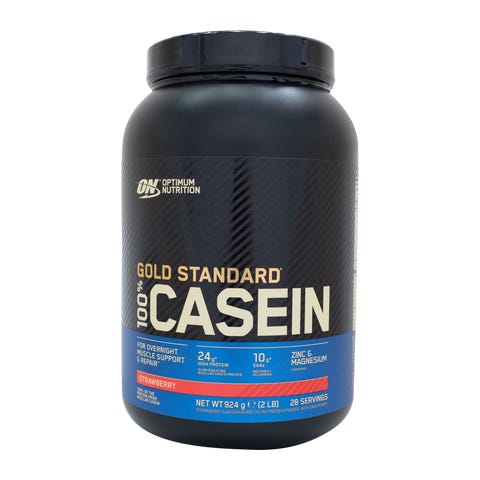 Proteiinilisät, jotka sisältävät vain hidasta kaseiiniproteiinia. Täydellinen lisä päivittäiseen ruokavalioon. Valmistettu ensiluokkaisista raaka-aineista.Optimum Nutritionin 100 % Casein Gold Standard on hidas maitoproteiini, ja sen etuna on hidas imeytyminen, mikä on toivottavaa päiväsaikaan ja ennen kaikkea silloin, kun on aika nukkua.Se, että kaseiinilla on tämä hitaasti imeytyvä vaikutus, saa elimistöön antikatabolisen vaikutuksen, kun lihakset hyödyntävät aminohappoja tasaisemmin ja pidemmän ajan kuluessa. Kaseiiniproteiini on pH-herkkä ja muodostaa siksi geelimäisen koostumuksen mahalaukkuun. Tämä tarkoittaa, että sen hajoaminen aminohapoiksi kestää kauemmin kuin esimerkiksi heraproteiinin. Kun lihakset hyödyntävät aminohappoja tasaisemmin pidemmän ajan kuluessa, se saa elimistöön antikatabolisen vaikutuksen, joka tarjoaa paremmat olosuhteet palautumiselle ja kasvulle.Toinen kaseiiniproteiinin etu on, että kylläisyyden tunne lisääntyy, koska kaseiinin koostumus on kermaisempi kuin heraproteiinin. Kaseiini on tavallisen maidon yleisin proteiini.Sekoita 1 mittalusikallinen 2–4 dl:aan vettä. Säädä nesteen määrä haluttuun koostumukseen. Ota 1–2 annosta osana välipalaa tai mieluiten juuri ennen nukkumaanmenoa.