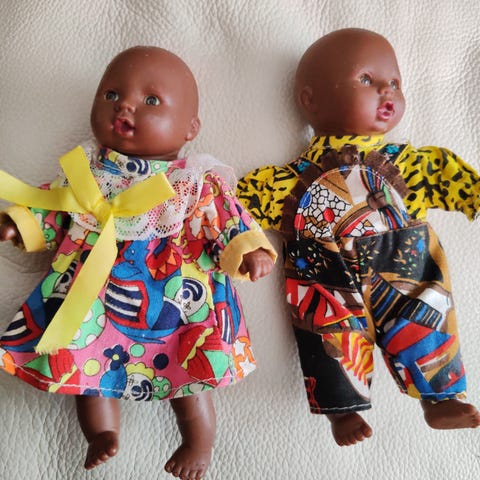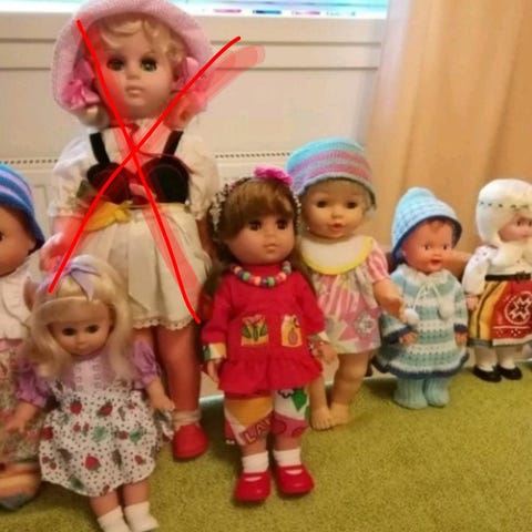 Kaikki kuvan nuket ja niiden tarvikkeet.