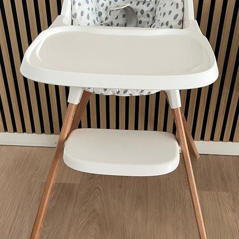 Täydellinen tuoli, joka kasvaa lapsen mukana. Syöttötuolin istuinsyvyyttä voi säätää, ja takajalkojen pyörien ansiosta tuolia on helppo siirrellä paikasta toiseen.