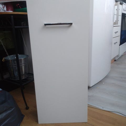 Vuoden vanha Ikean kaappi.Muuten hyvässä kunnossa, mutta ovessa huomaamaton naarmu pakkauksen avaamisesta ja toisessa sivulla tahra hiusväristä. Molemmat kuvissa.