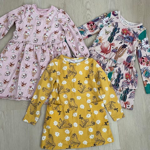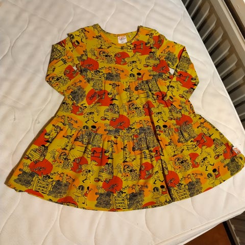 Me&I ihana kissamekko 98/104cm ja Peppi Pitkätossu nukke. Mekossa pari pistettä ( näkyvät kuvassa)eivät mielestäni haittaa lainkaan käyttöä. Muuten siistikuntoiset.