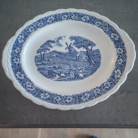 Ehjä. Ajantuomaa krakleerausta pinnassa. Siisti. Kaunis sinikukkakuvioinen.