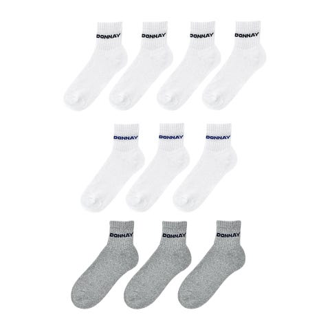 10 parin pakkaus puolipitkiä sukkia pehmeää puuvillasekoitetta. Mukava ribbineulos nilkassa ja klassinen logo sporttiseen tyyliin.Päivitä sukkalaatikkosi Donnay 10 Pack Quarter -sukilla. Sukat on valmistettu pehmeästä puuvillasekoitteesta, ja nilkassa on ribbineulosta, joka takaa varman ja mukavan istuvuuden.Ilmeen viimeistelee painettu logo ja klassinen Donnay-merkki.Yksityiskohdat:- 50 % puuvillaa, 26 % polyesteriä, 22 % polypropeenia, 2 % elastodieenia