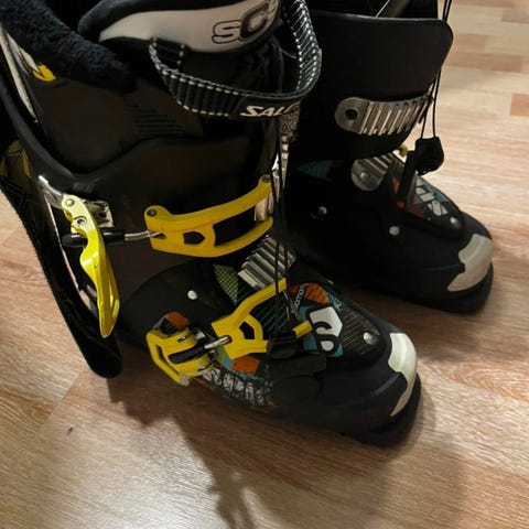 Laadukkaat alppilaskettelumonot Salomon Ghost -sarjasta. Tukeva rakenne, hyvä istuvuus ja luotettava suoritus rinteessä. Soljet ja remmit toimivat normaalisti, ja kunto on hyvä käytetyksi (normaalia käytön jälkeä). Sisäkenkä lämmin ja kuori kestävä.