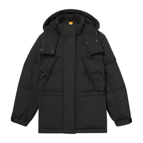 Naisten takki 100 % kierrätettyä nailonia, jossa DWR-käsittely ja 100 % kierrätetty untuvaeristys. Vettä hylkivä, vetoketju edessä ja piilotettu turvatasku.