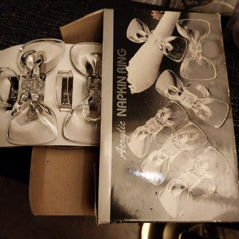 Myydään kuvan mukaiset uudet lautasliinarenkaat. Rengasosa metallia ja koriste muovia. Sormuksen näköinen. Omassa pakkauksessa. Voin postittaa tai kulkeutuu reittieni varrelle.