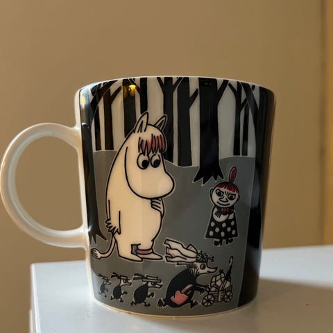 Kaksi Seikkailu Muutto Muumimukia yhteishintaan 20 euroa.