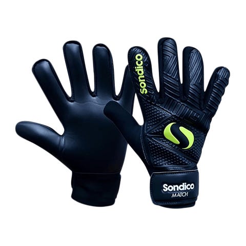 Klassiset hanskat kestävää materiaalia. Tahmea kämmen antaa hyvän otteen pallosta. Ergonominen malli takaa hyvän istuvuuden ja mukavuuden.Sondicon Match Goalkeeper Glove -hanskoissa on hengittävät verkkopaneelit sormien sivuilla. Tämä lisää ilmanvaihtoa ja mukavuutta koko treeninajan. Tarranauhasuljenta.
