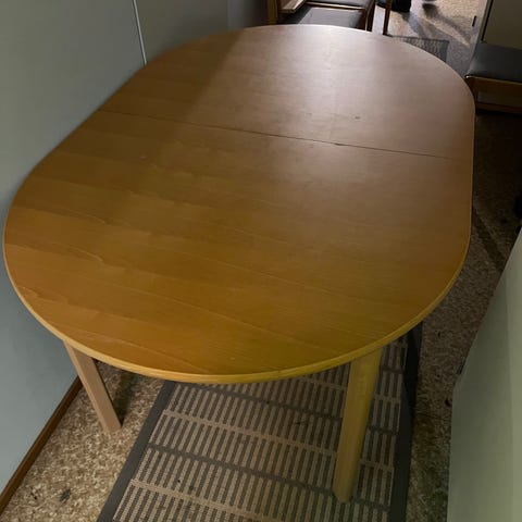 Pyöreä, jatkettava ruokapöytä. Nouto maanantai iltaan mennessä.
