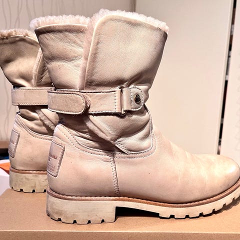 PANAMA JACK, turkisvuoriset talvikengät/nauhanilkkurit. Aitoa mokkaa. Harmaanrusehtavat. Melko vähälle käytölle jääneet. Uutena hinta ollut n. 150 e. Sisäpituus aavistuksen alle 25 cm (vaikea mitata). Mokassa on vähän käytönjälkiä, muuten hyvässä kunnossa. Todella lämpöiset kengät.